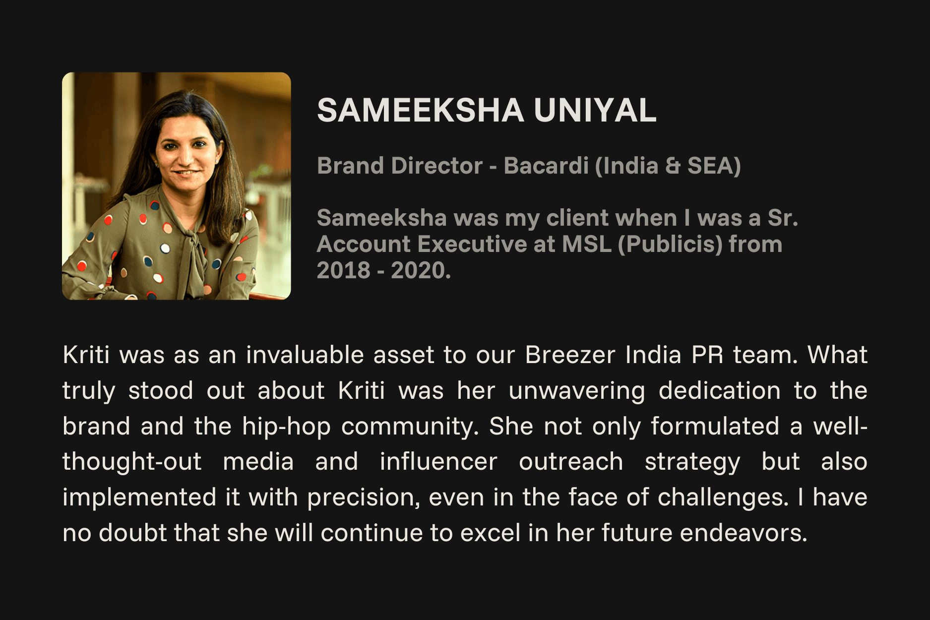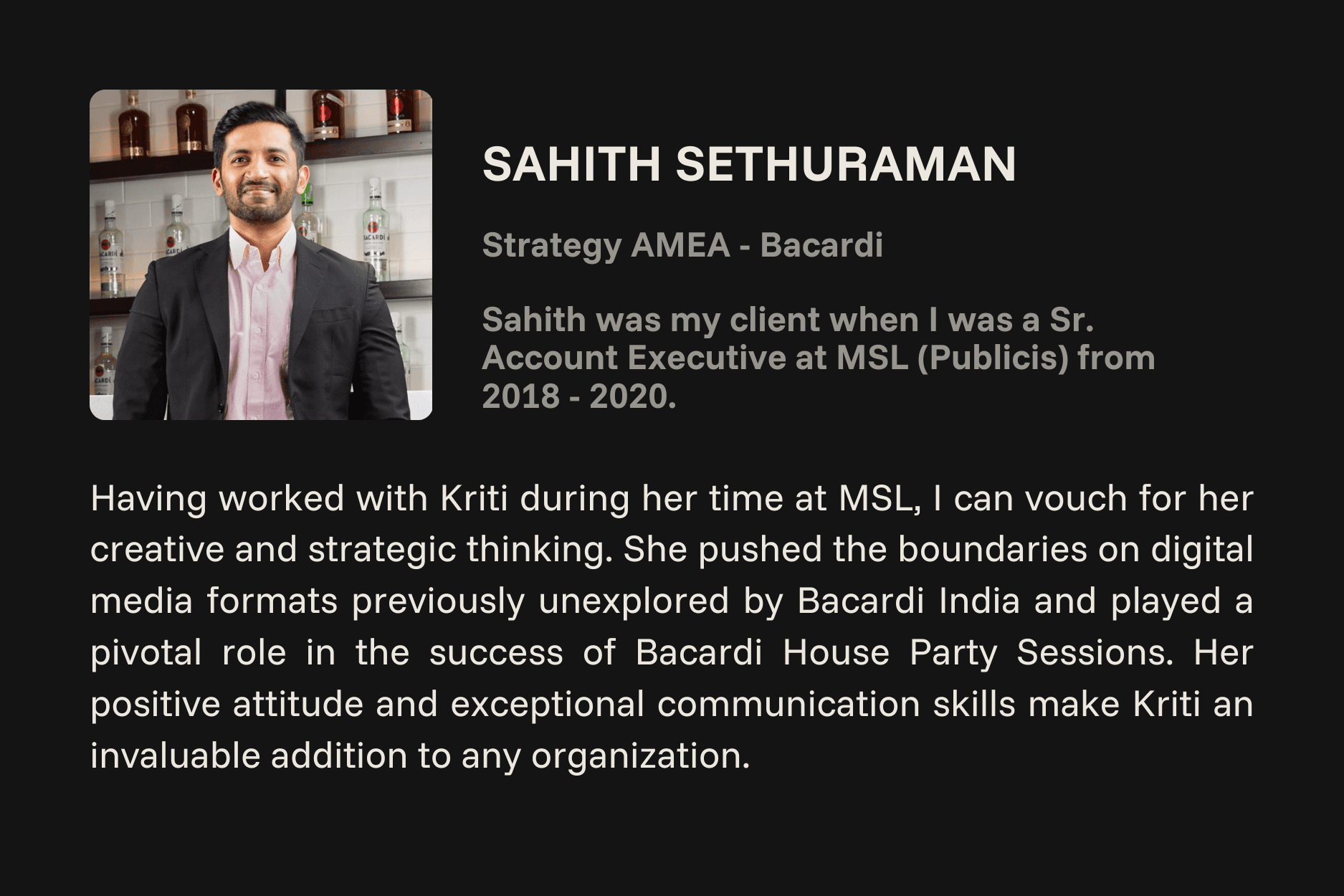 Led integrated comms for Bacardi and VFS; delivered billion-impression campaigns, award-winning launches, and scaled influencer ecosystems driving cultural and commercial impact.